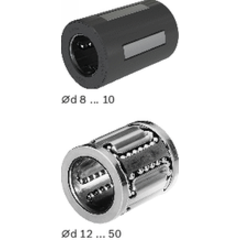 Bosch Rexorth Linear bushing KBC-10-NR R065801030 RexrothLow-cost Linear Bushing for general requirementsSmall outer dimensions and highly compact constructionHigh dynamic load rating and long service life due to hardened segmental load-bearing plates with ball conformity in the track. High travel speed (5 m/s)Integrated wiper seals, external seals or no wiper seals